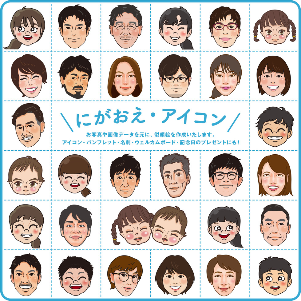 お写真や画像データを元に、似顔絵を作成いたします。