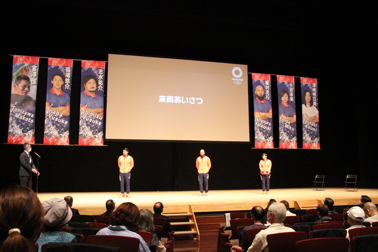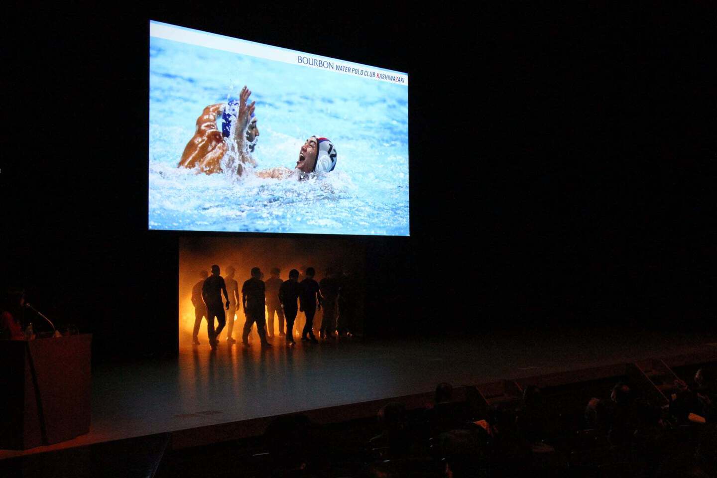その後開催された、ブルボンウォーターポロクラブ柏崎 日本選手権壮行会。選手登場シーンなど工夫を凝らしました。